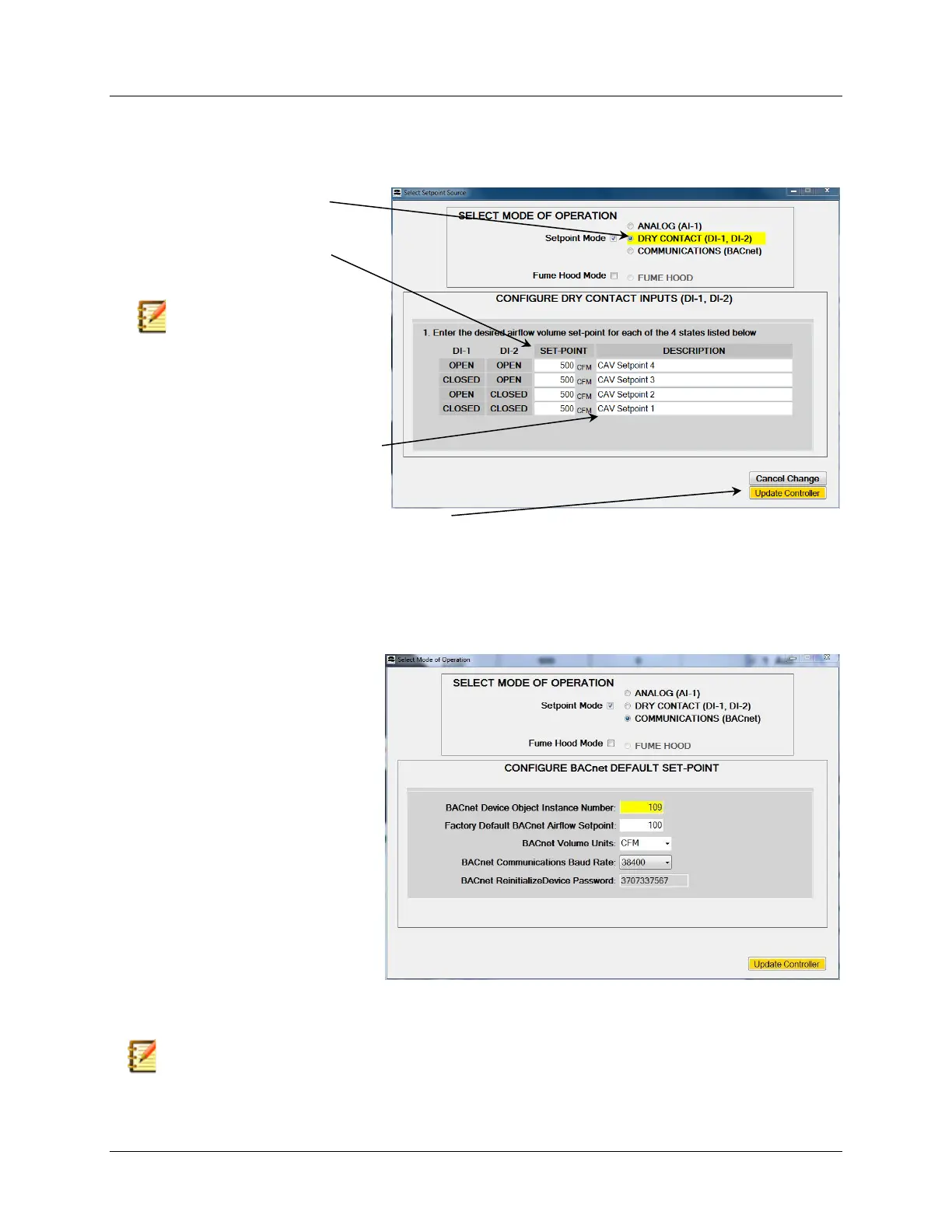 Selecting Dry Contact will configure the controller to receive the airflow setpoint based on the
