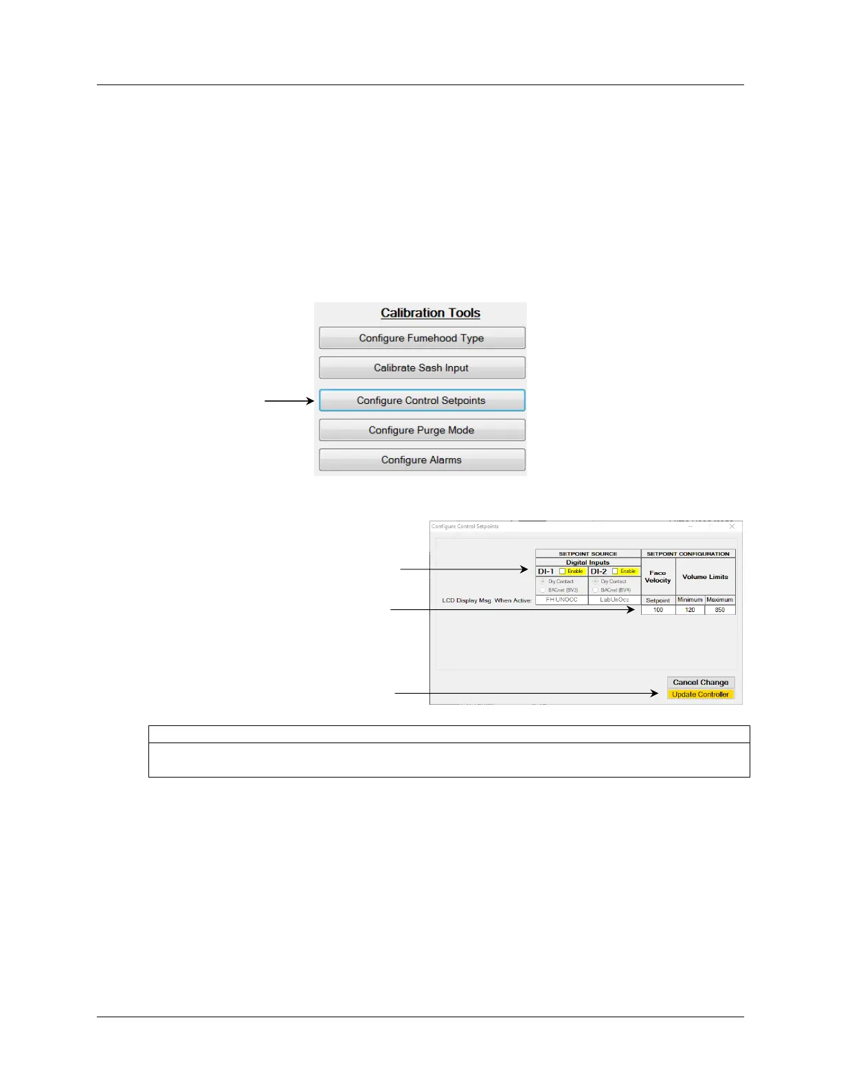 Face Velocity and Airflow Volume. These control set points are state-based values activated by