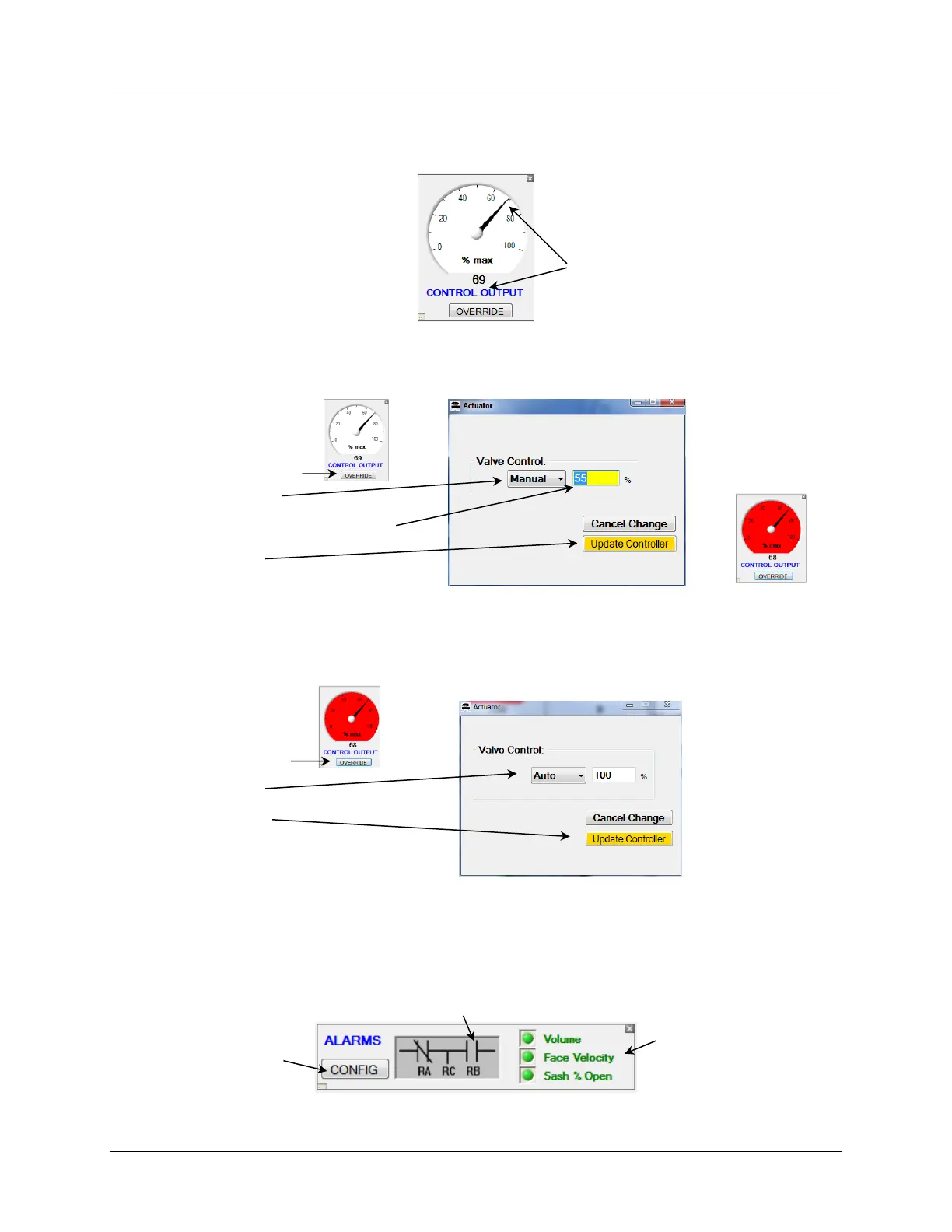 The Control Output Gauge displays the Control Output % and also provides a means for