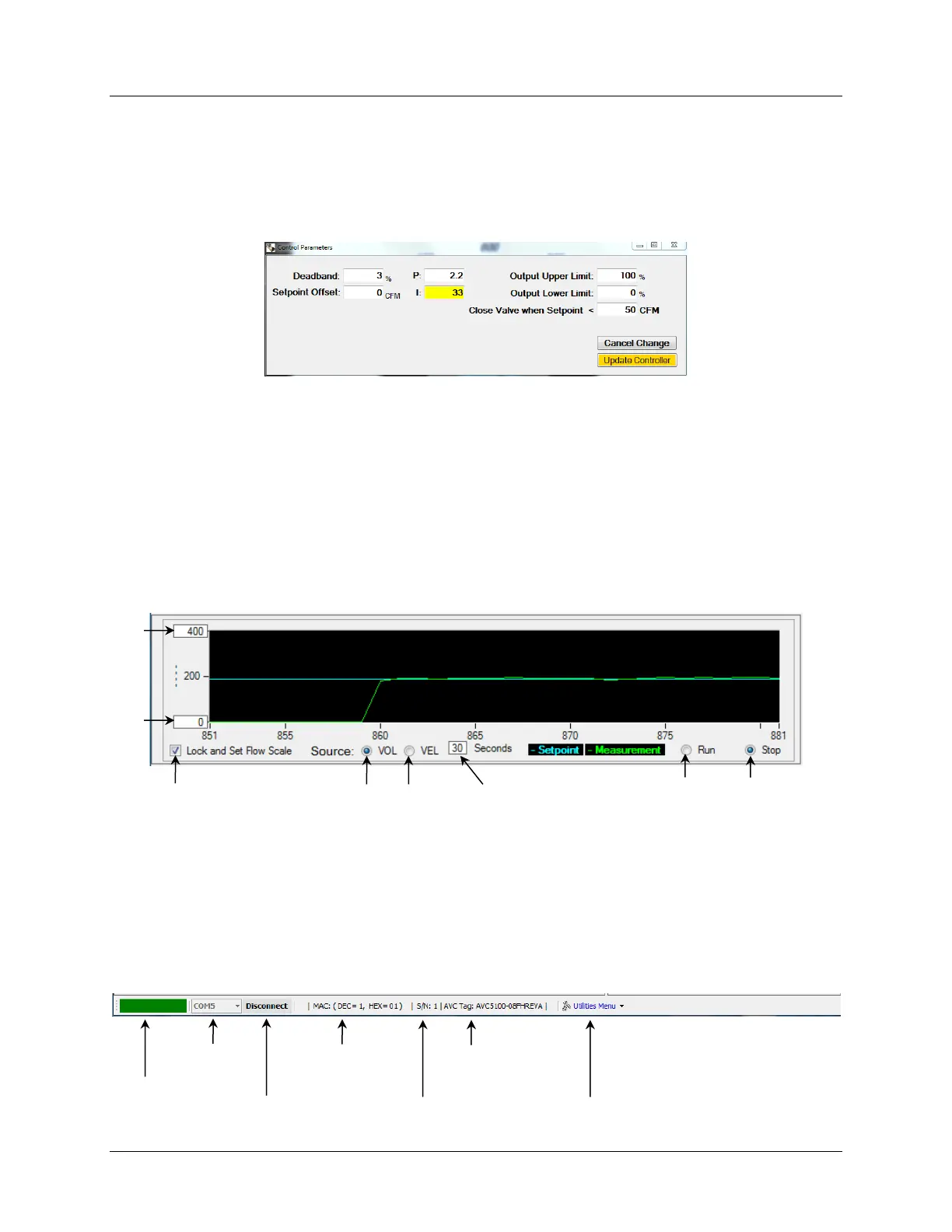 The Strip Chart provides a real-time x-y strip chart plot of the Airflow Setpoint and