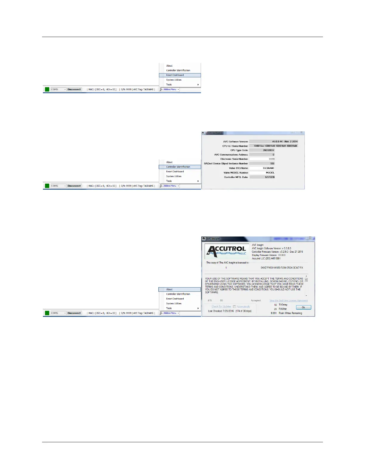 Selecting “About” provides the software versions for the AVC Insight User Interface Software,