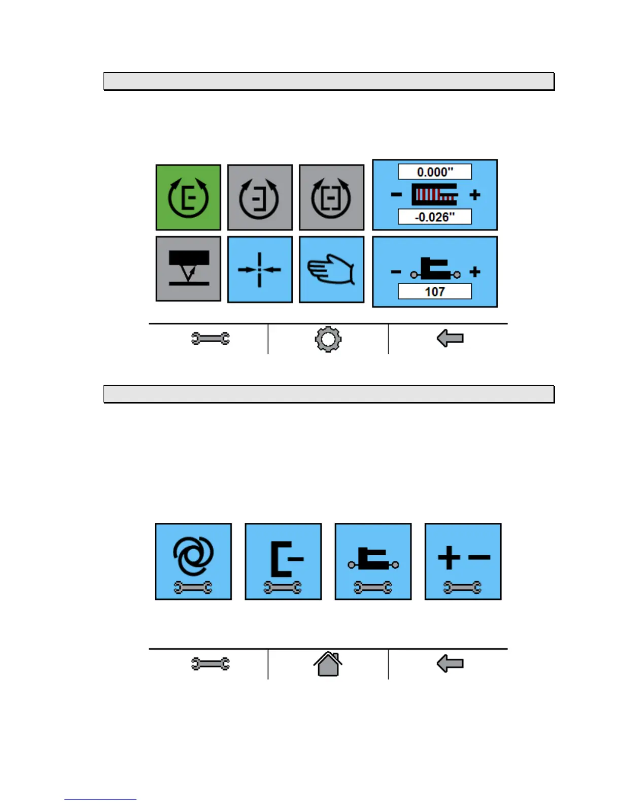 When the wrench icon is pressed, the Settings screen appears. From left to right, the Settings