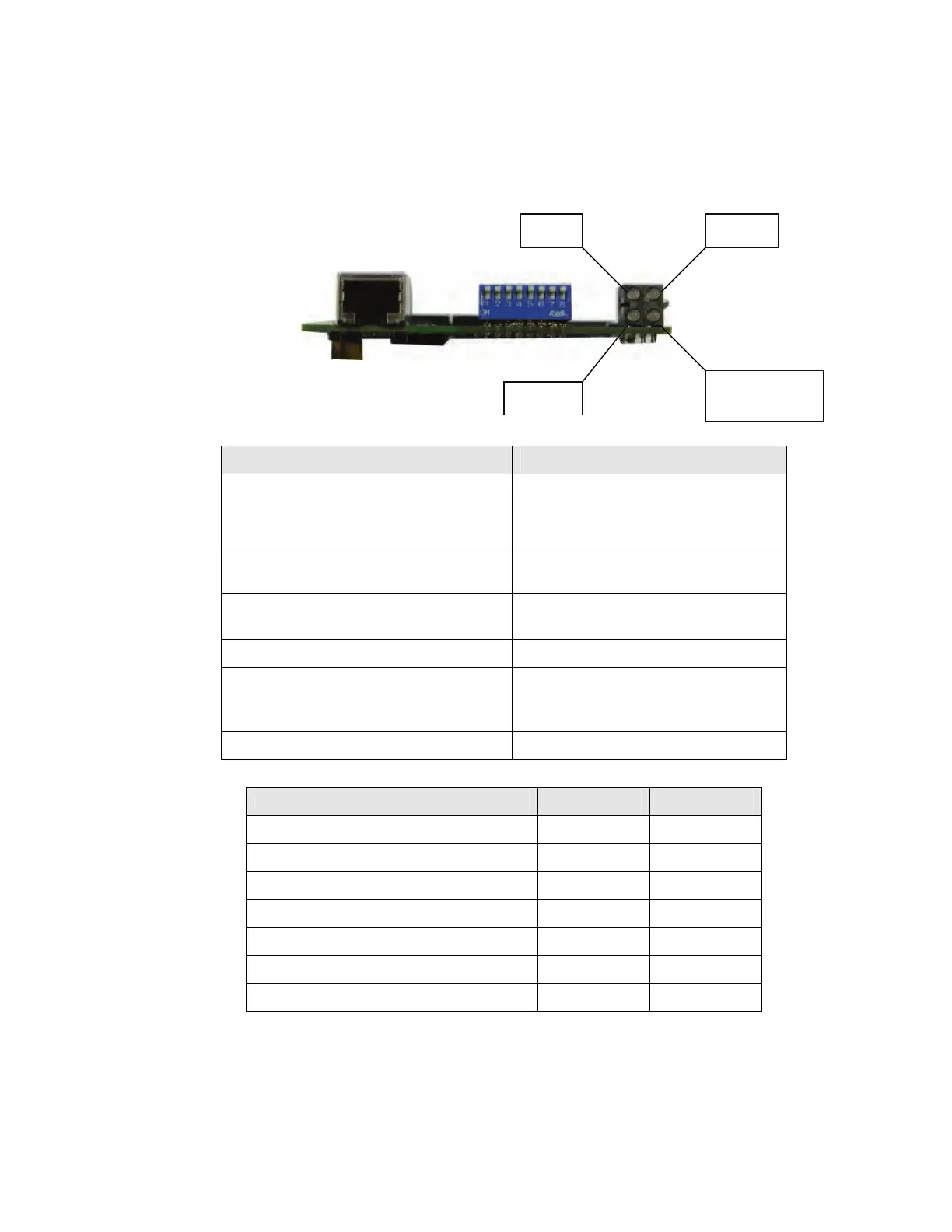 described in the figure and tables below. The four status LEDs indicate network and module