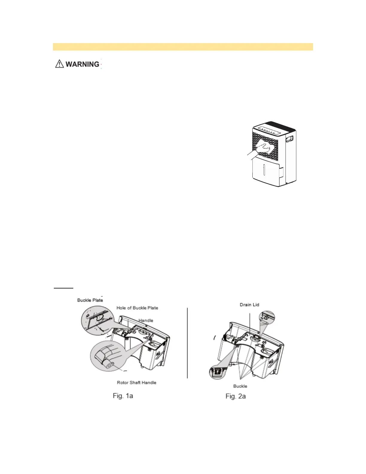 2. Press down all buckles around the water bucket. Lift the drain lid (shown in Fig.2a, Fig.2b, Fig.2c).