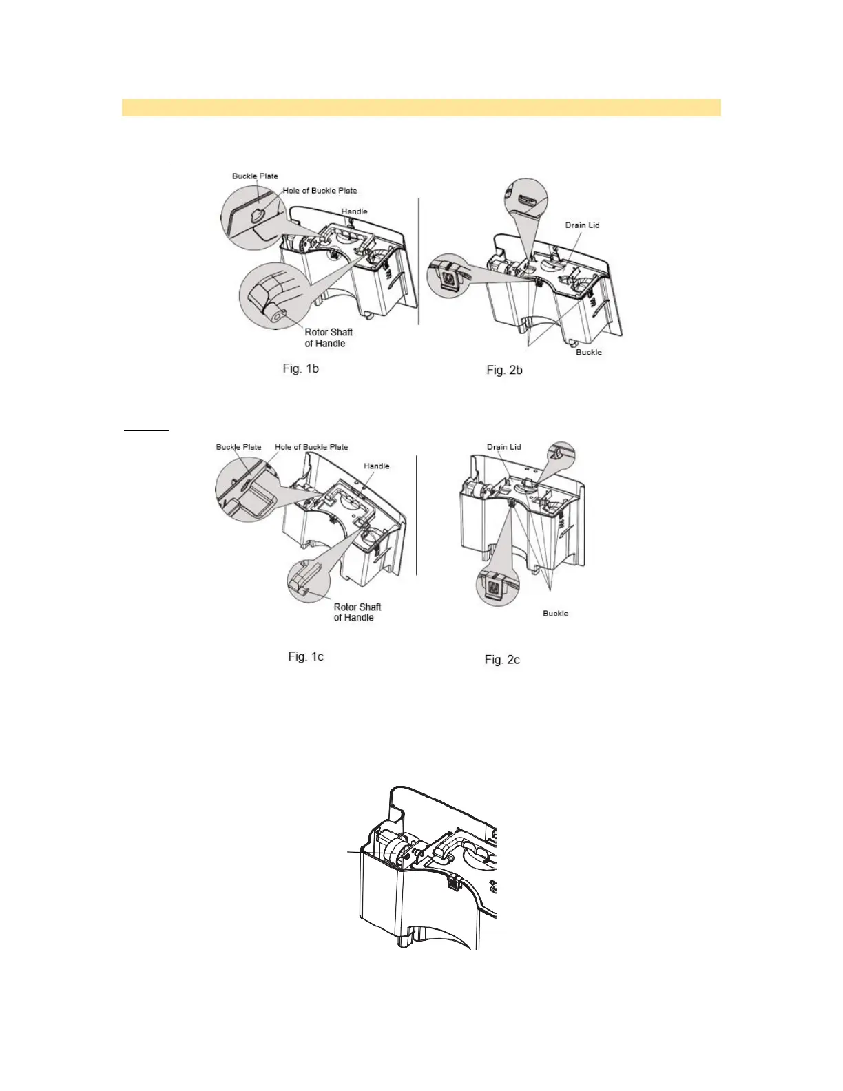 3. After cleaning, replace the drain lid and handle and make sure the float of water bucket is placed