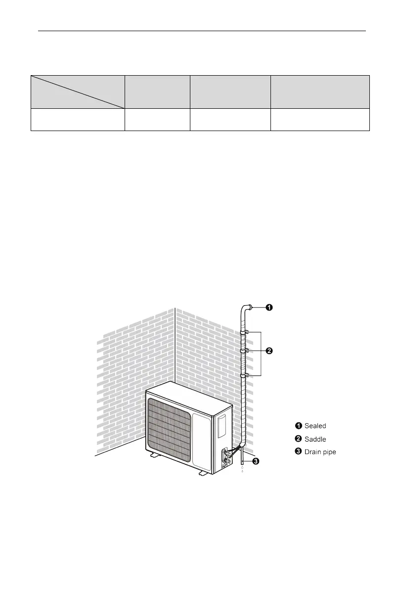 (2) If the outdoor unit is above the indoor unit, arrange the pipeline according to