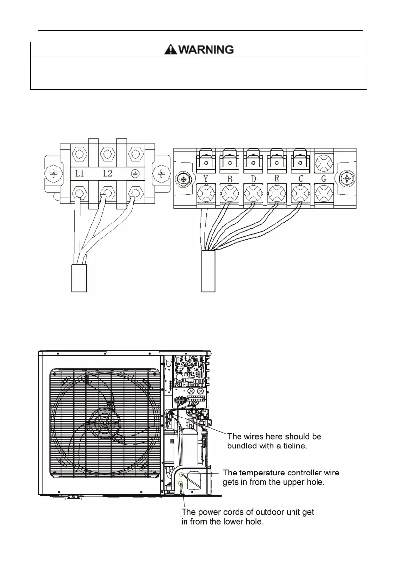 Remove the big handle/front panel of the outdoor unit and insert one end of the