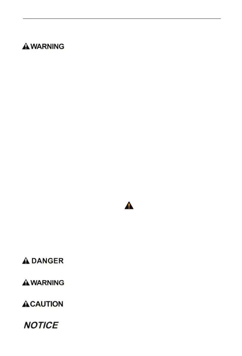WARNING, CAUTION and NOTICE. These words are used with the safety--alert