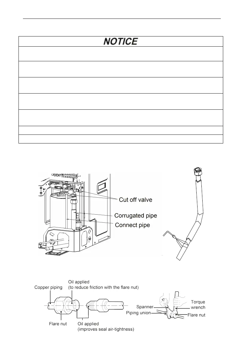 ①. Connect the pipe to the unit. Please follow the instructions stated in the figures