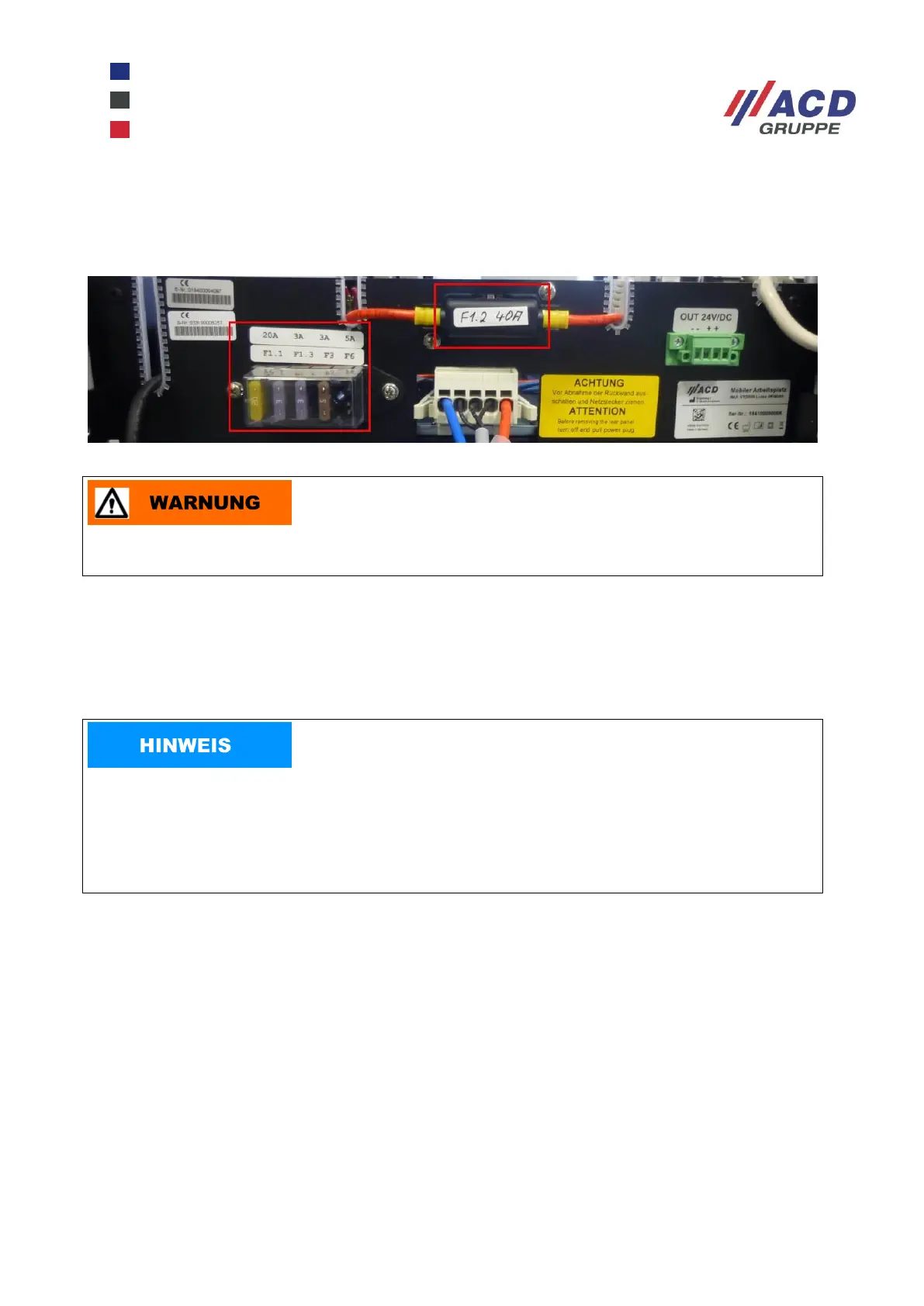 Beschriftung der Sicherungen angegeben ist.