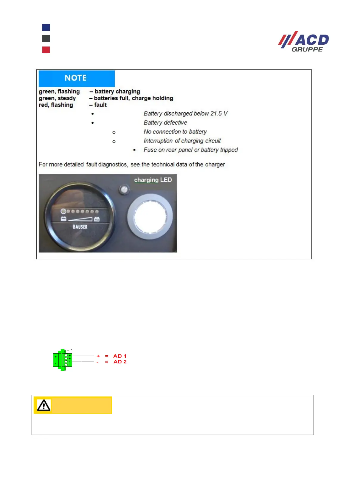 Ensure correct polarity! Observe maximum load (see technical data).
