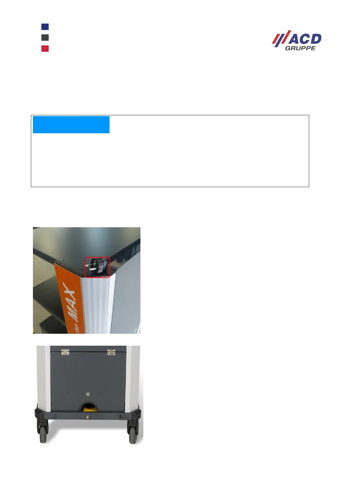 voltage of 230 V AC – 50 Hz. If the battery tray is inserted and operating temperature has been reached,