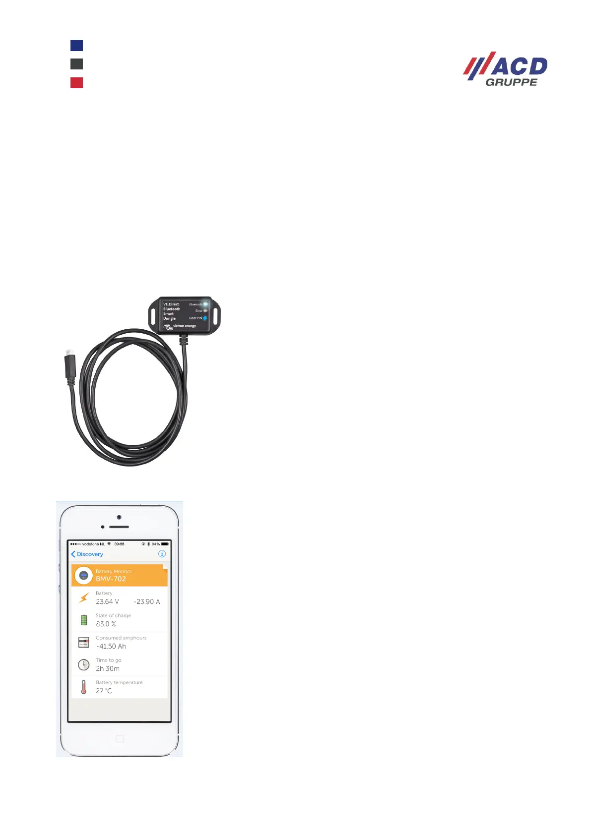 With the energy-saving Bluetooth Smart Dongle, data and alarms can be displayed in real time in an app for