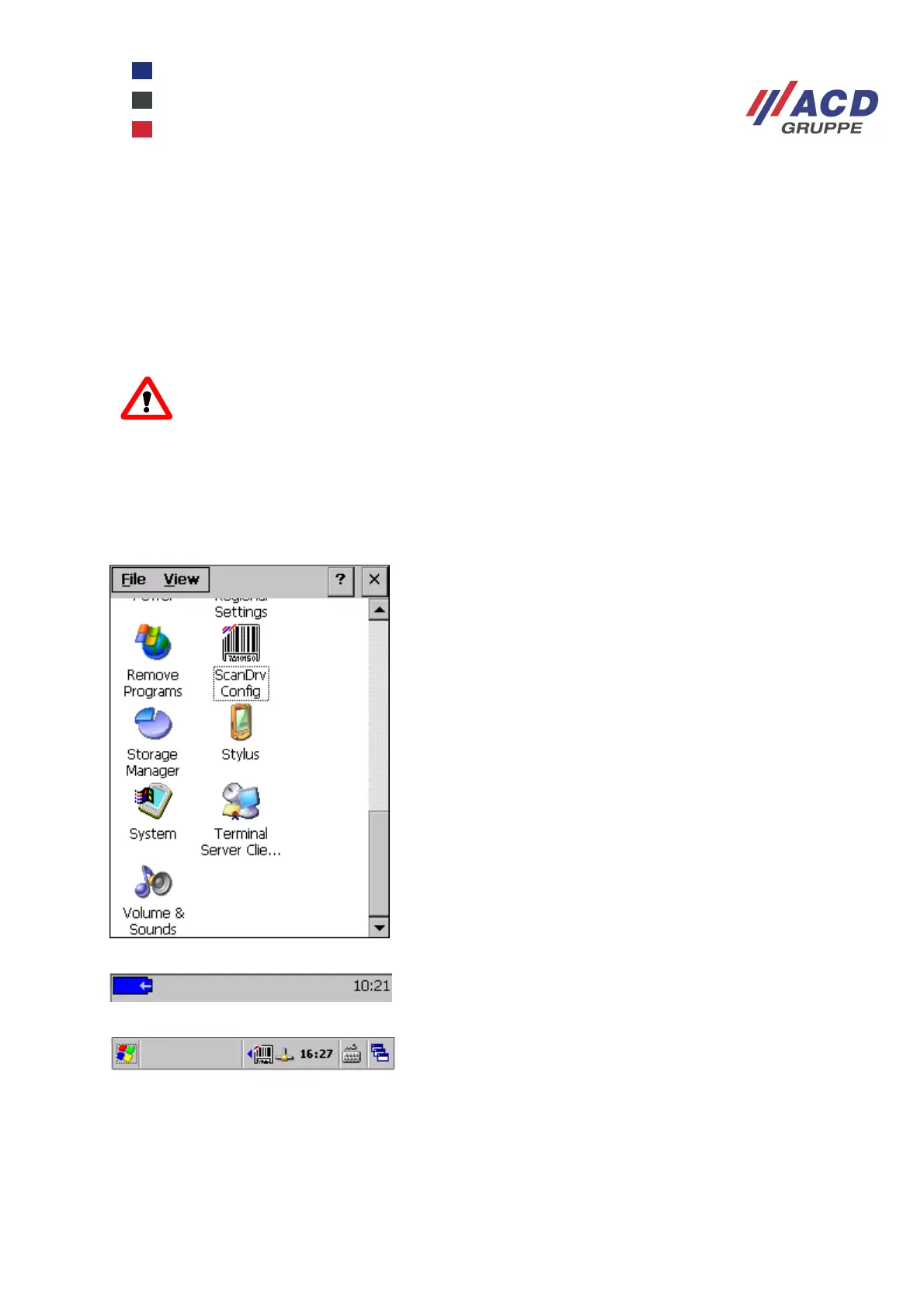 Other ways to start the configuration tool is either from Start / Programs / ACD / System / Configure ScanDrv