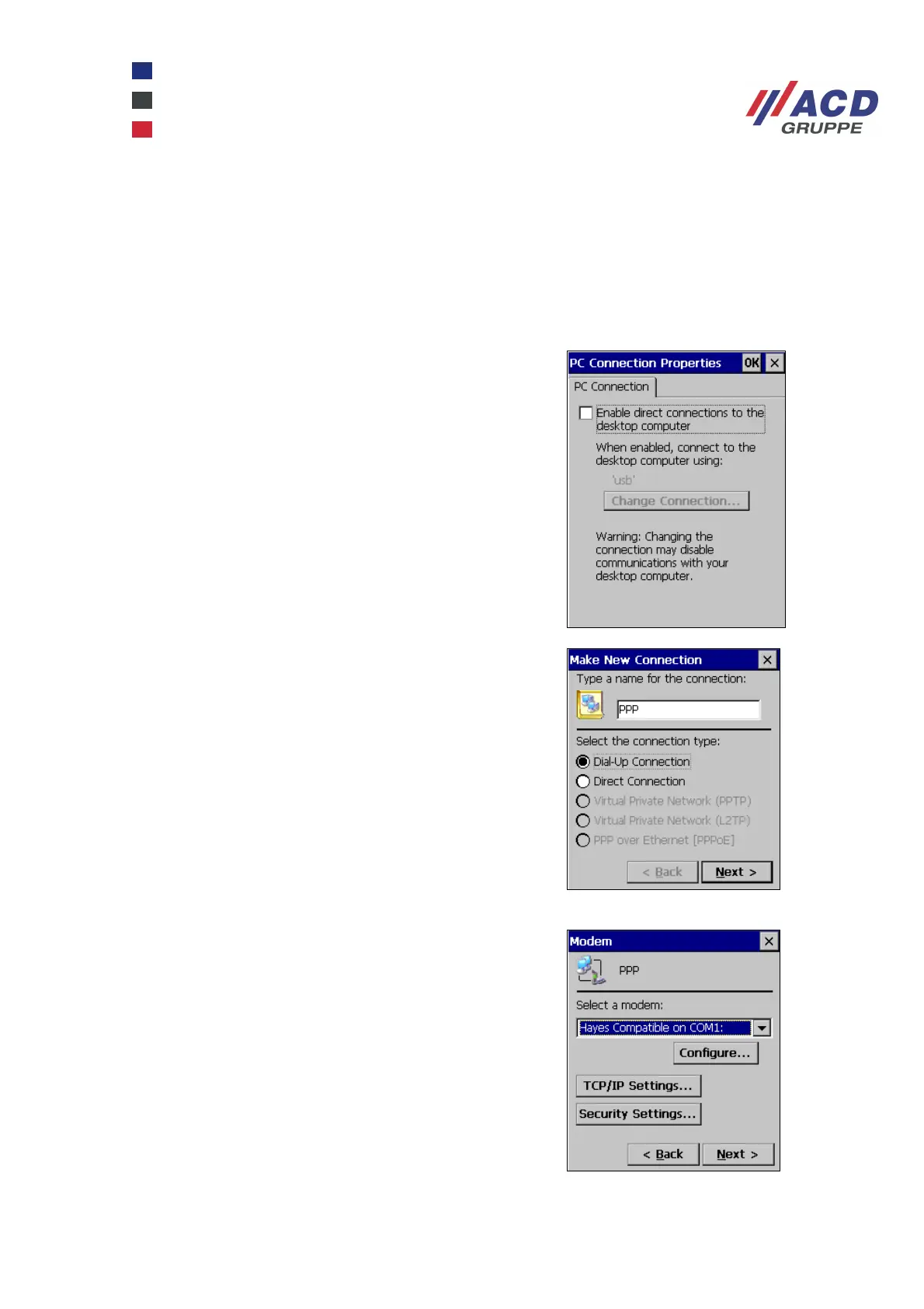 The PPP communication protocol (Point-to-Point) is installed on the Windows CEdevices. It is used to