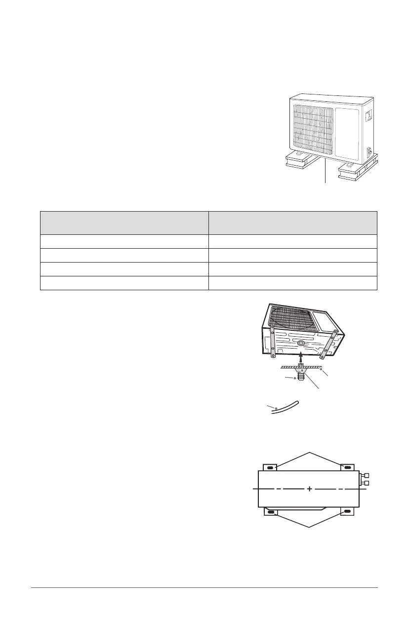 • The outdoor unit should be installed at least 3 cm above the floor in