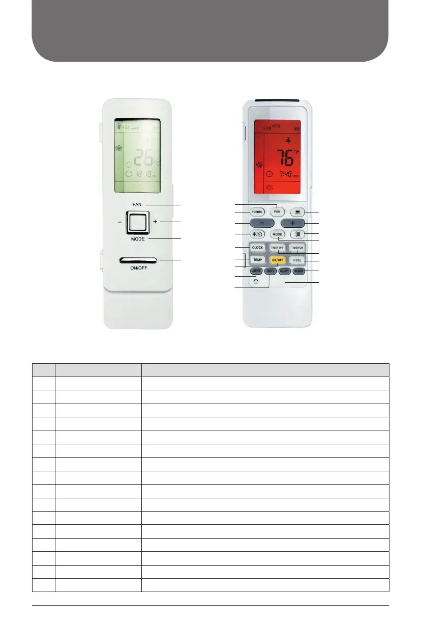 1 ON/OFF Turn on or turn off the unit