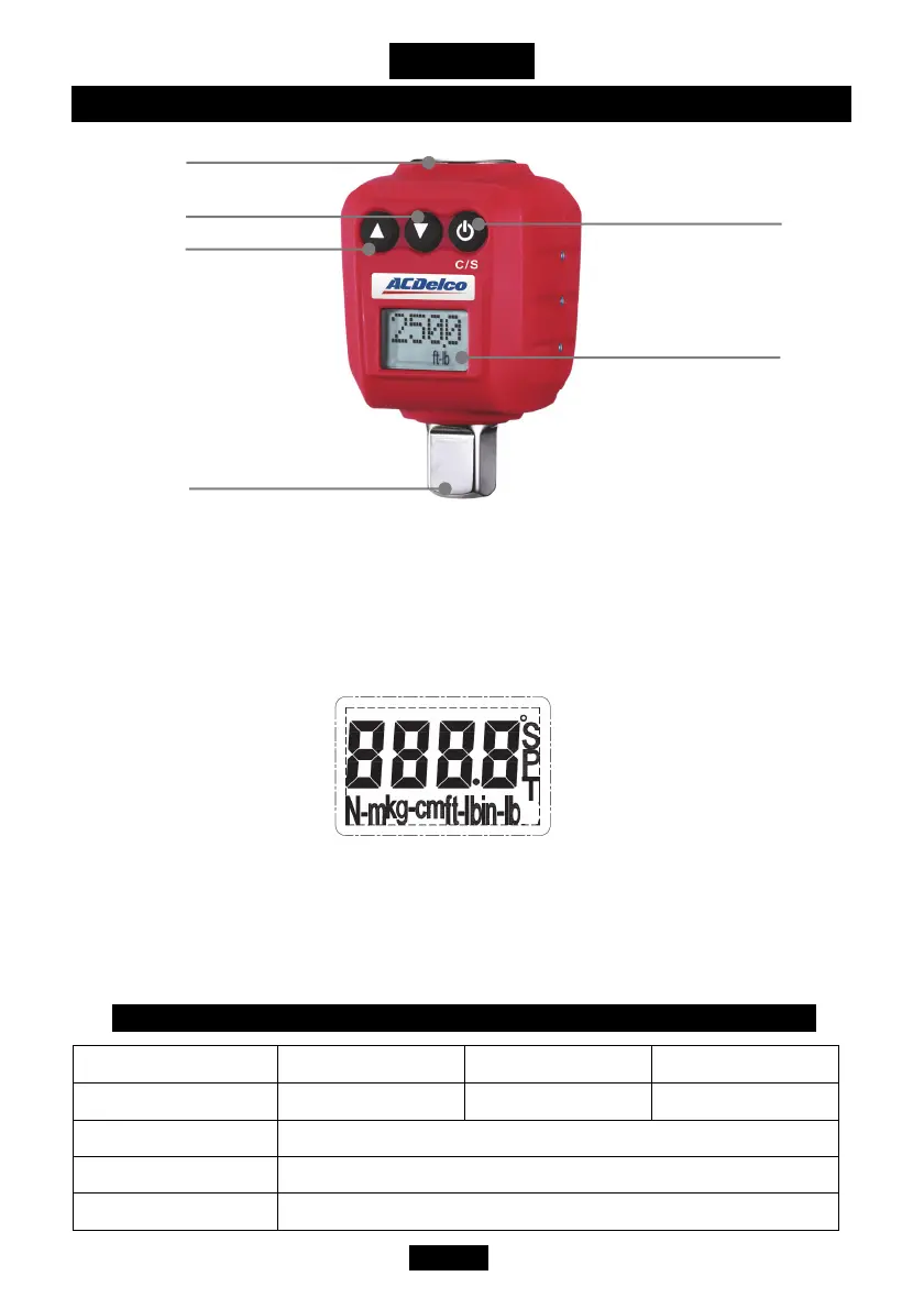 1. 3/8” / 1/2” Square (Male) 2. LCD Panel