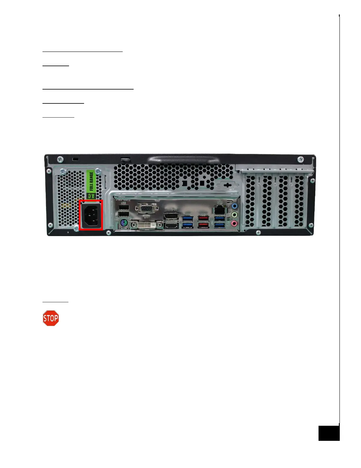 Step 1: Connect the external power cable from the rear of the chassis into the power supply