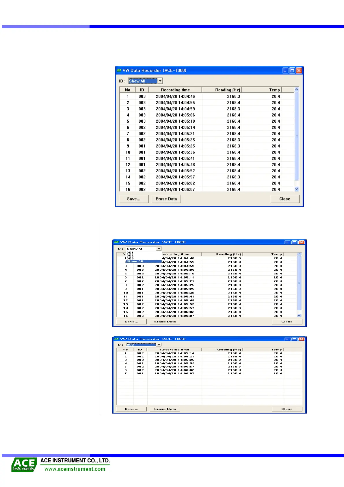 When a screen listing all saved data appears, click [ID:] option item to sort by all data