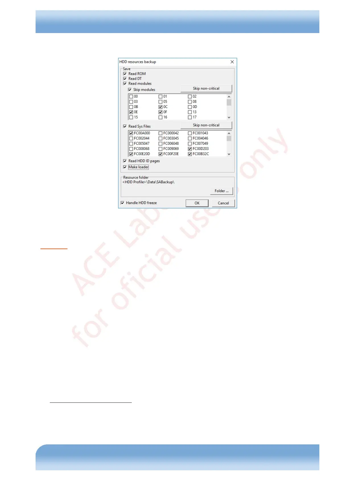 Attention! To bypass the modules and Sys Files files, which are not essential for a HDD and may cause a freeze