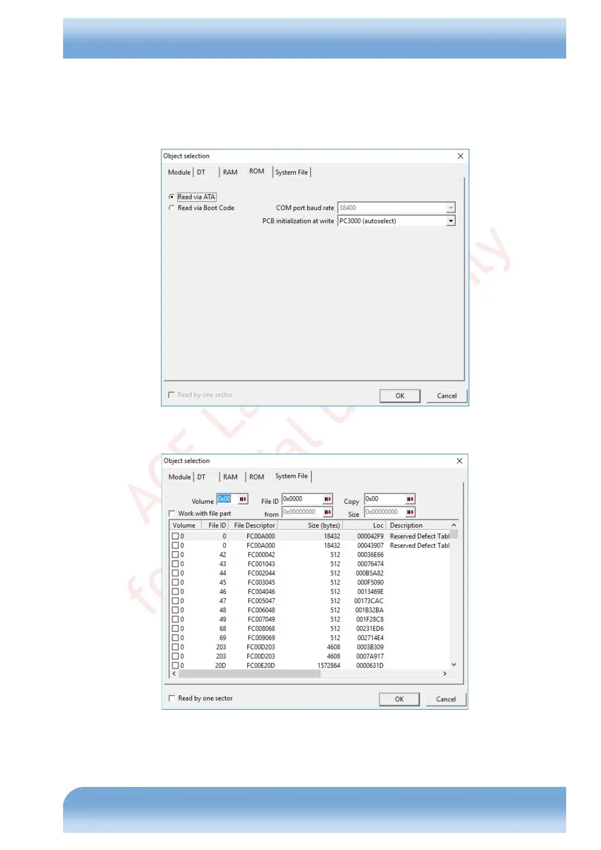Boot Code mode (terminal). In the latter case you have to specify the terminal baud rate. Writing to ROM is performed