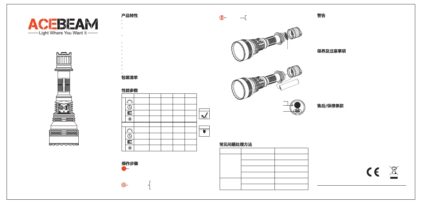 免责条款:Acebeam对因不按照手册中的警告使用产品而造成的