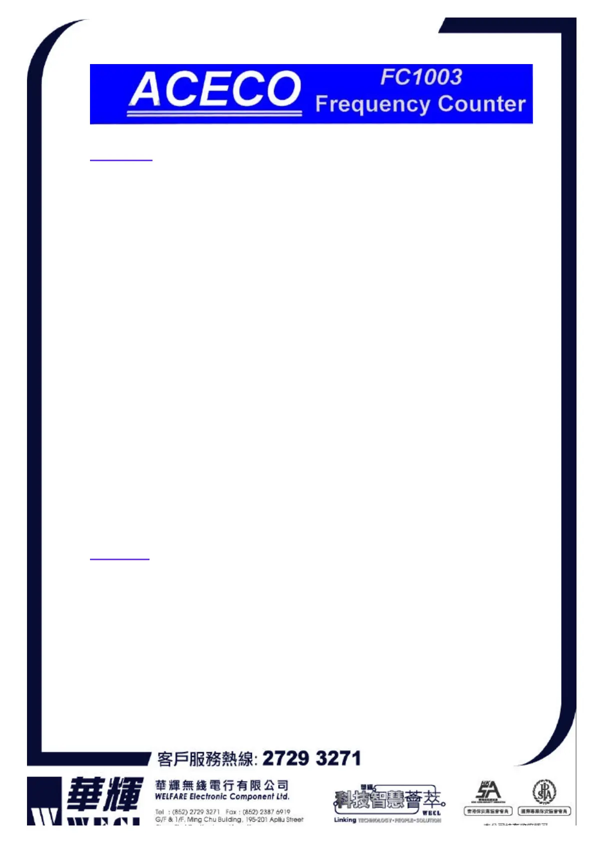 Welfare Electronic Component Ltd. guarantees the counter and accessories for one