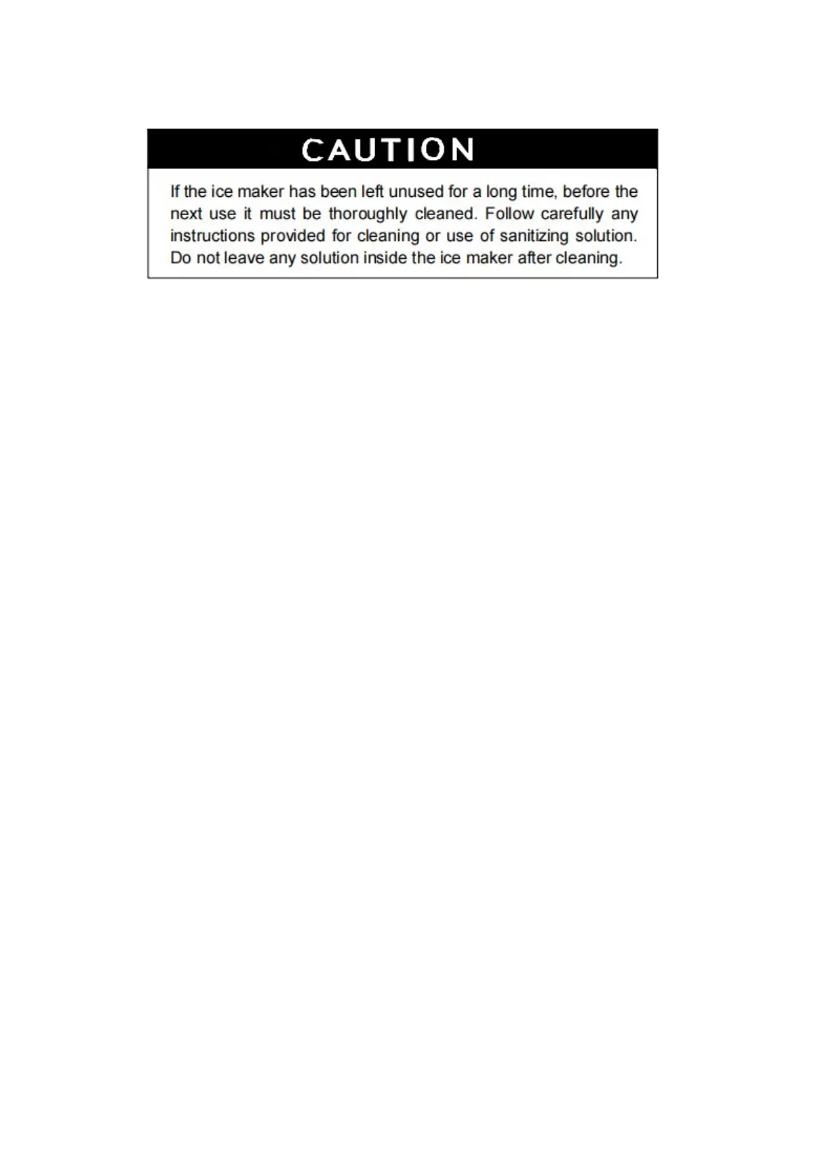 Ice storage bins should be sterilized occasionally. Before using the ice machine for the first time,
