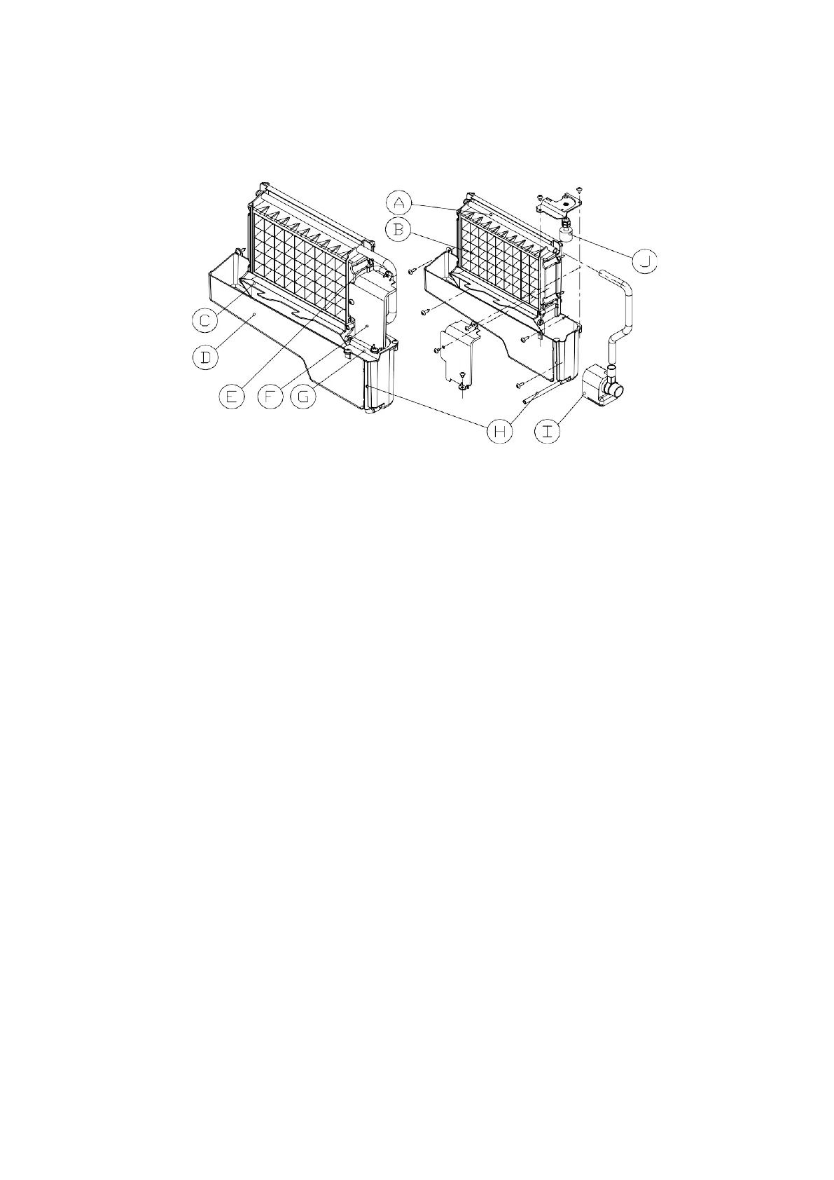 F. Cover plate on the right side of the evaporator