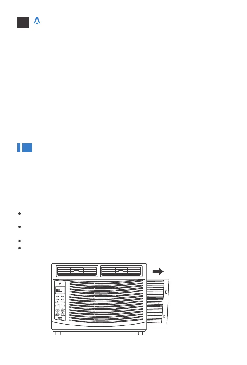 Remove the filter by sliding it out from the front right side of the air conditioner. (See