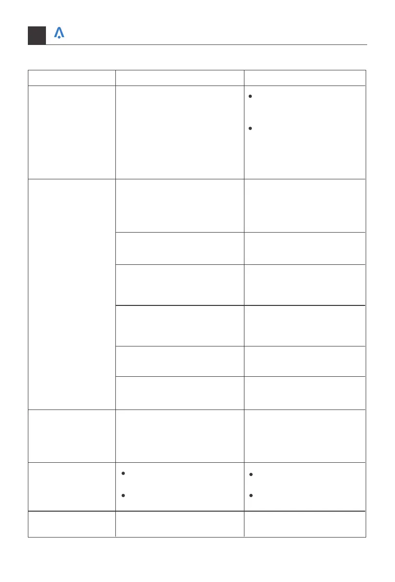 Problem Possible Causes Solutions