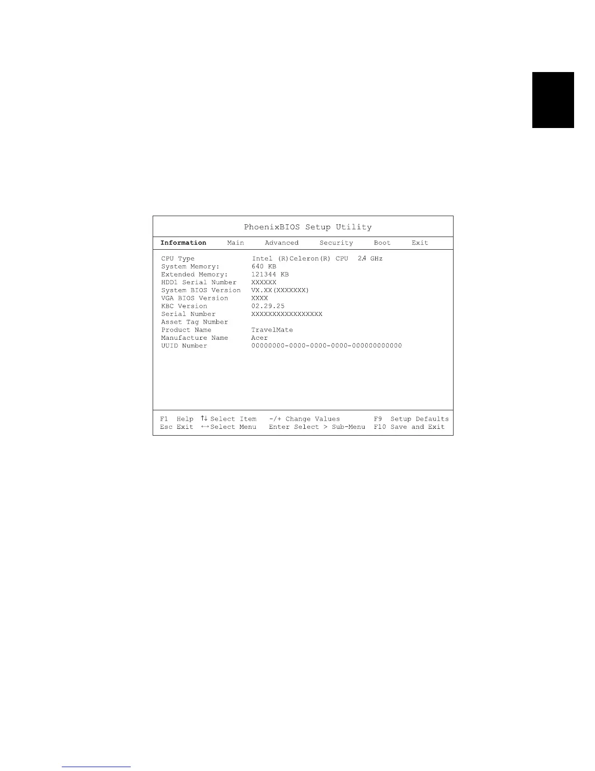 These are the menu options: Information, Main, Advanced, Security,