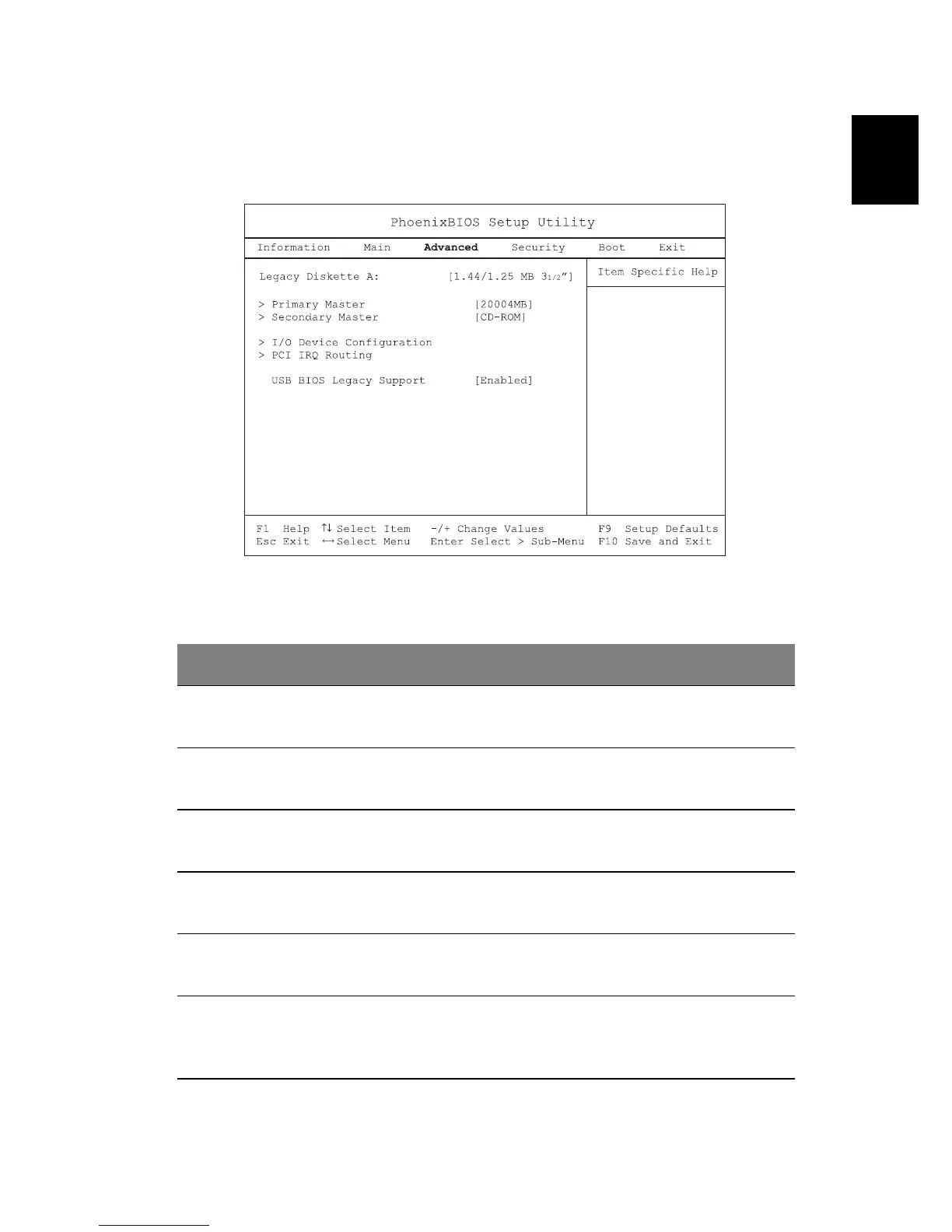Press Enter to access and set the PCI IRQ Routing sub-menu.