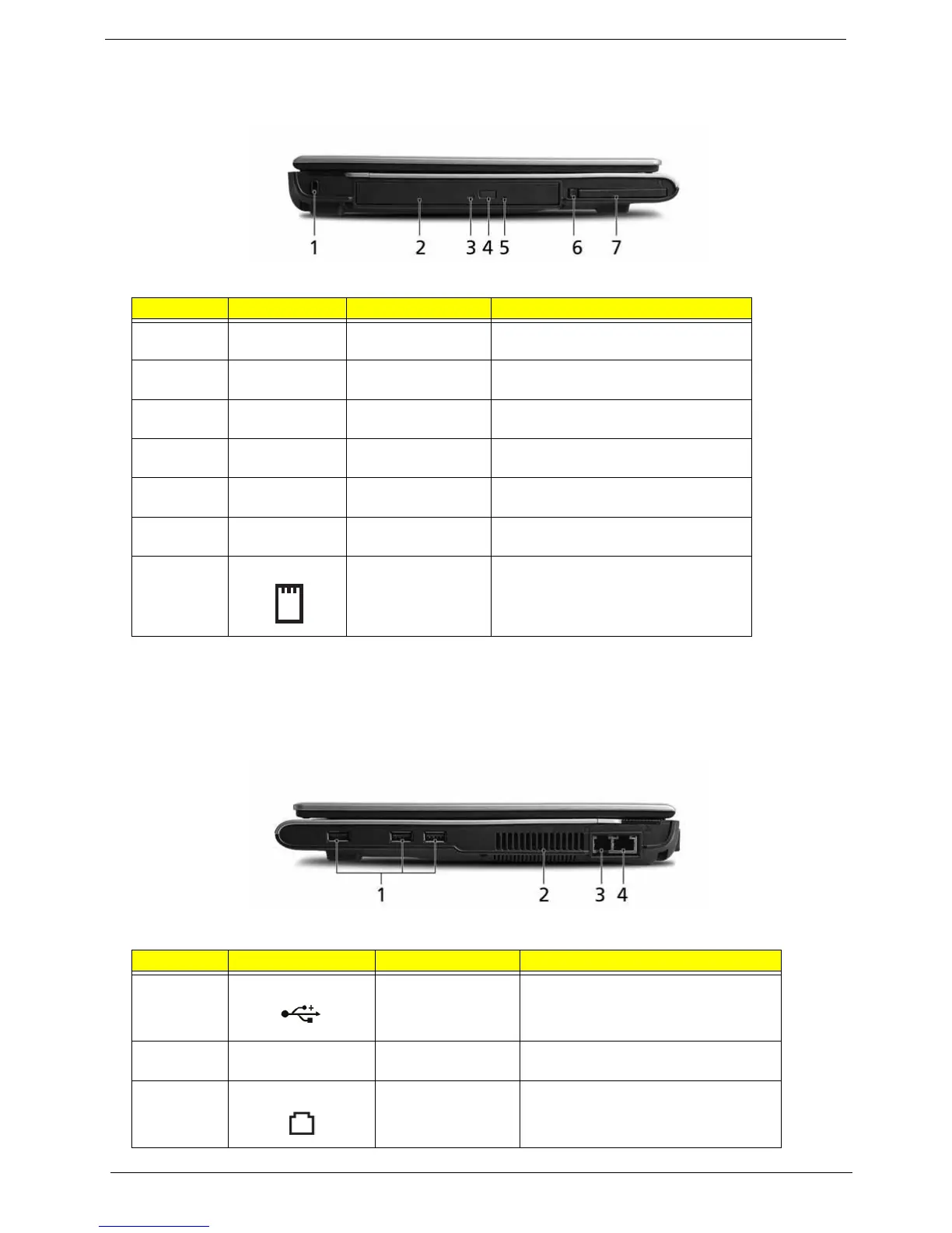 5 Emergency eject hole Ejects the optical drive tray when the