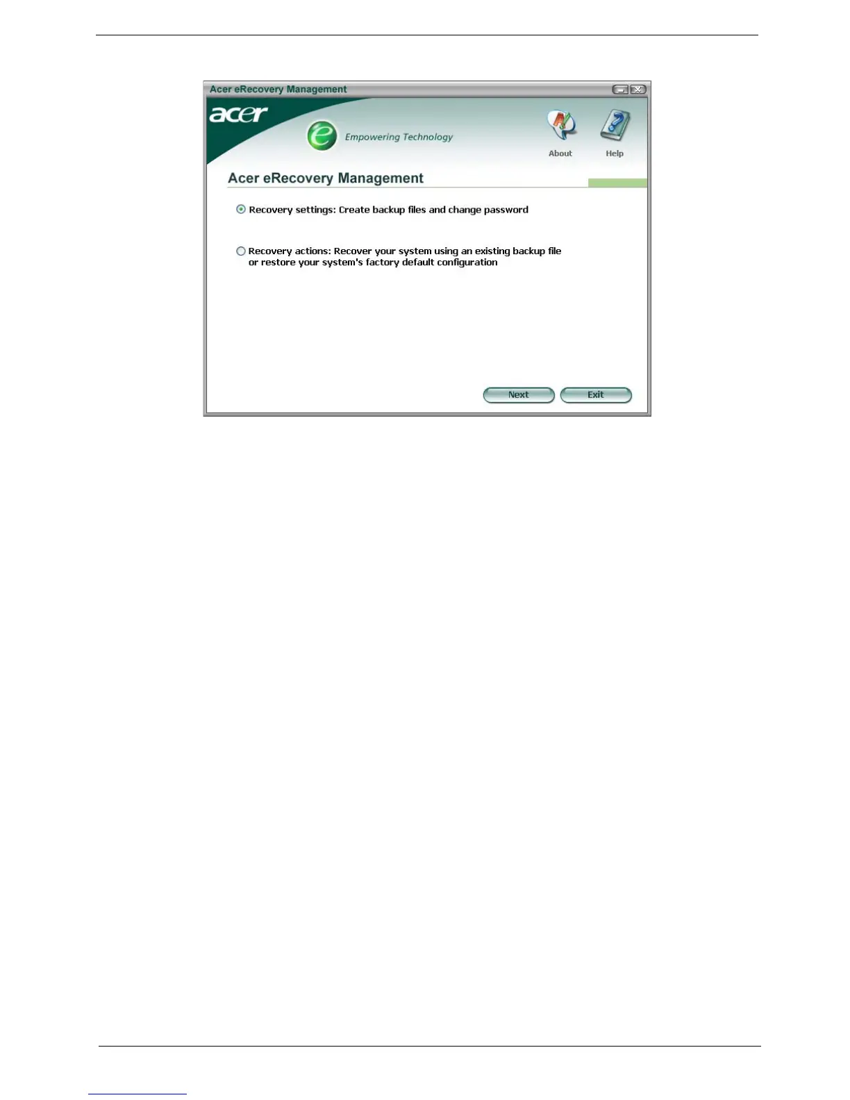 ensure the best results when recovering your system using a CD or Acer eRecovery Management,