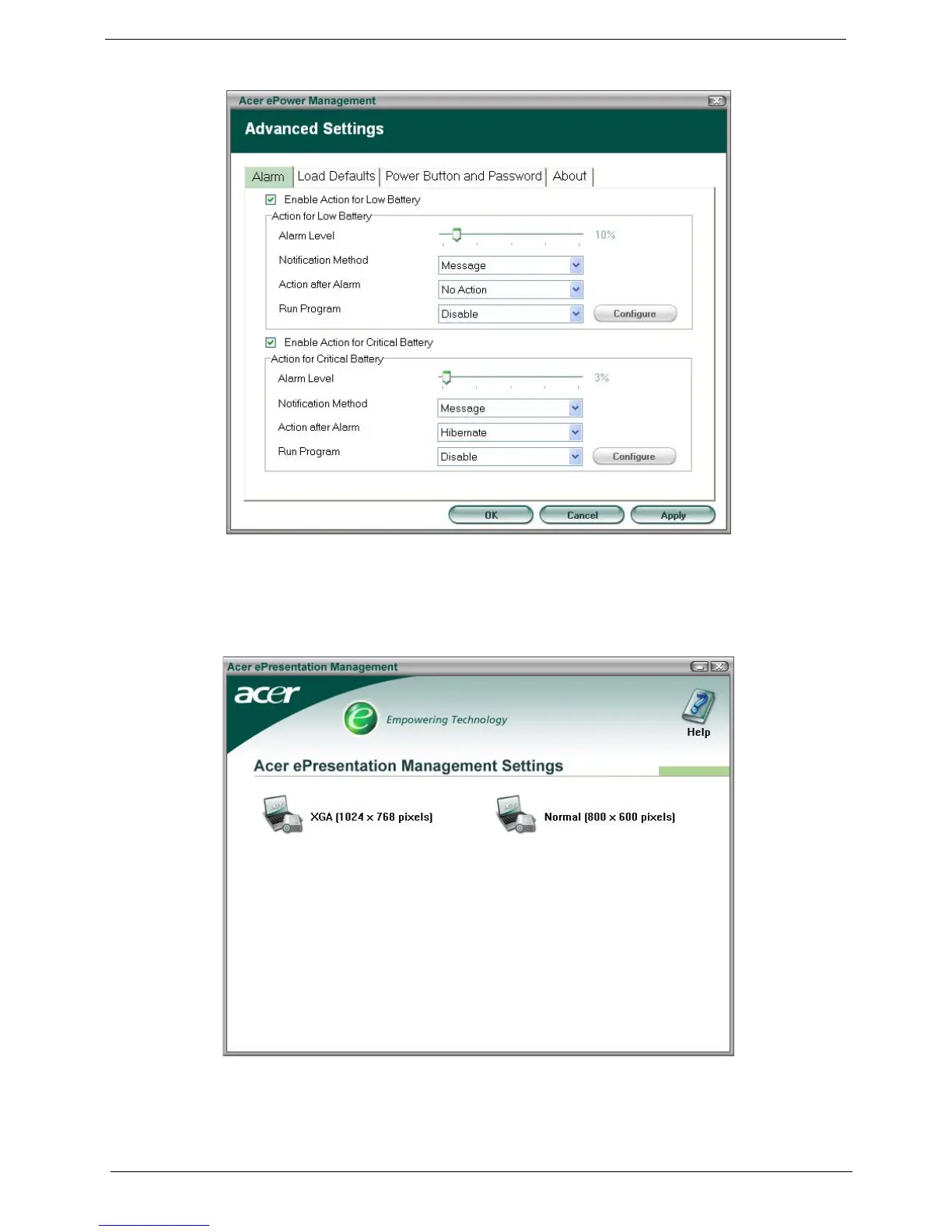Acer ePresentation Management lets you select from two of the most common projector resolutions: XGA and