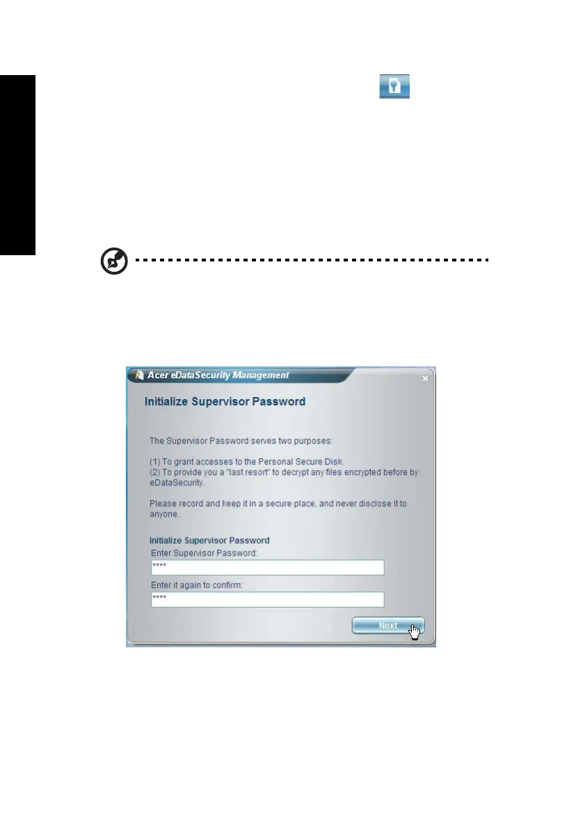 The Acer eDataSecurity Management setup wizard will prompt you for a