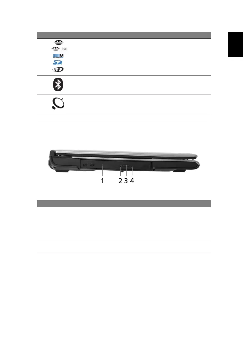 Lights up when the optical drive is active.
