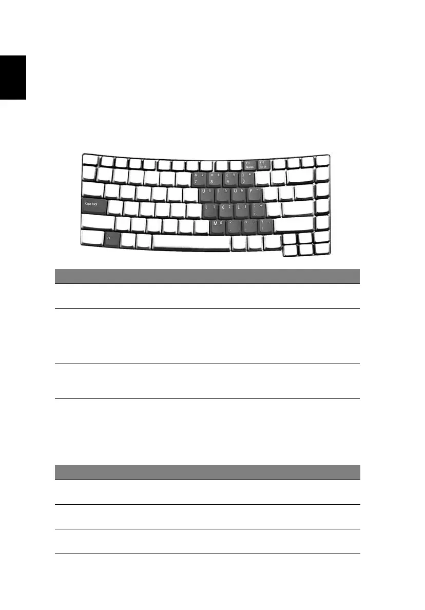 The embedded numeric keypad functions like a desktop numeric keypad. It is