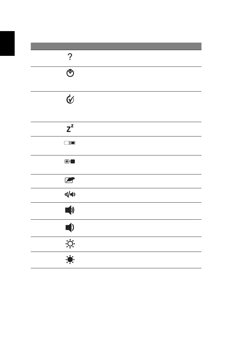 <Fn> + <F1> Hotkey help Displays help on hotkeys.