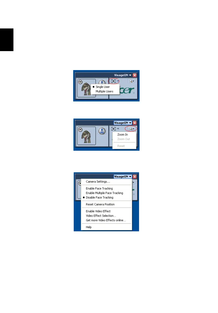 Users from the pop-up menu. For multiple users, the face tracking feature