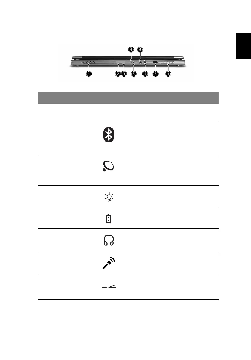 4 Power indicator Lights when the computer is on.
