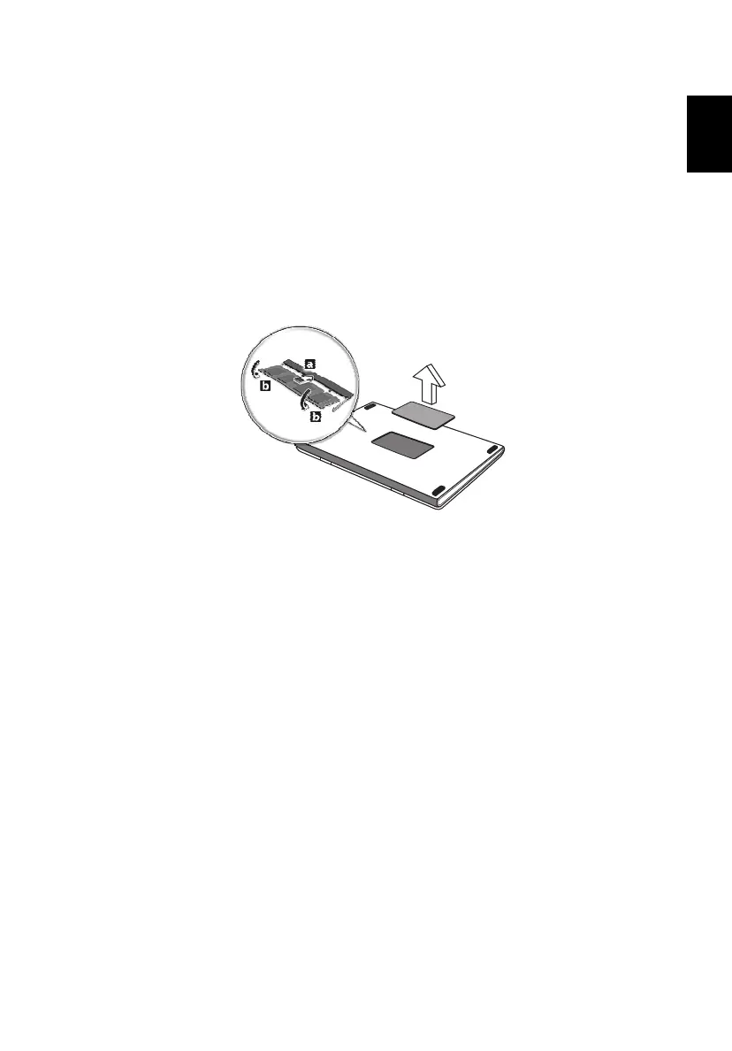 3 (a) Insert the memory module diagonally into the slot, then (b)