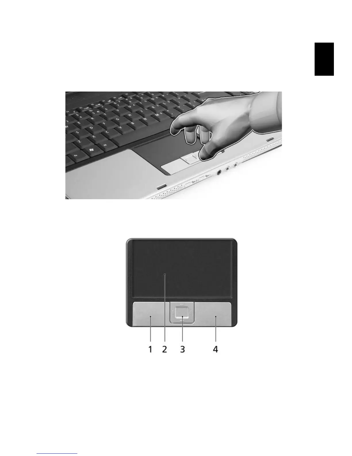 • Press the left (1) and right (4) buttons located beneath the touchpad to