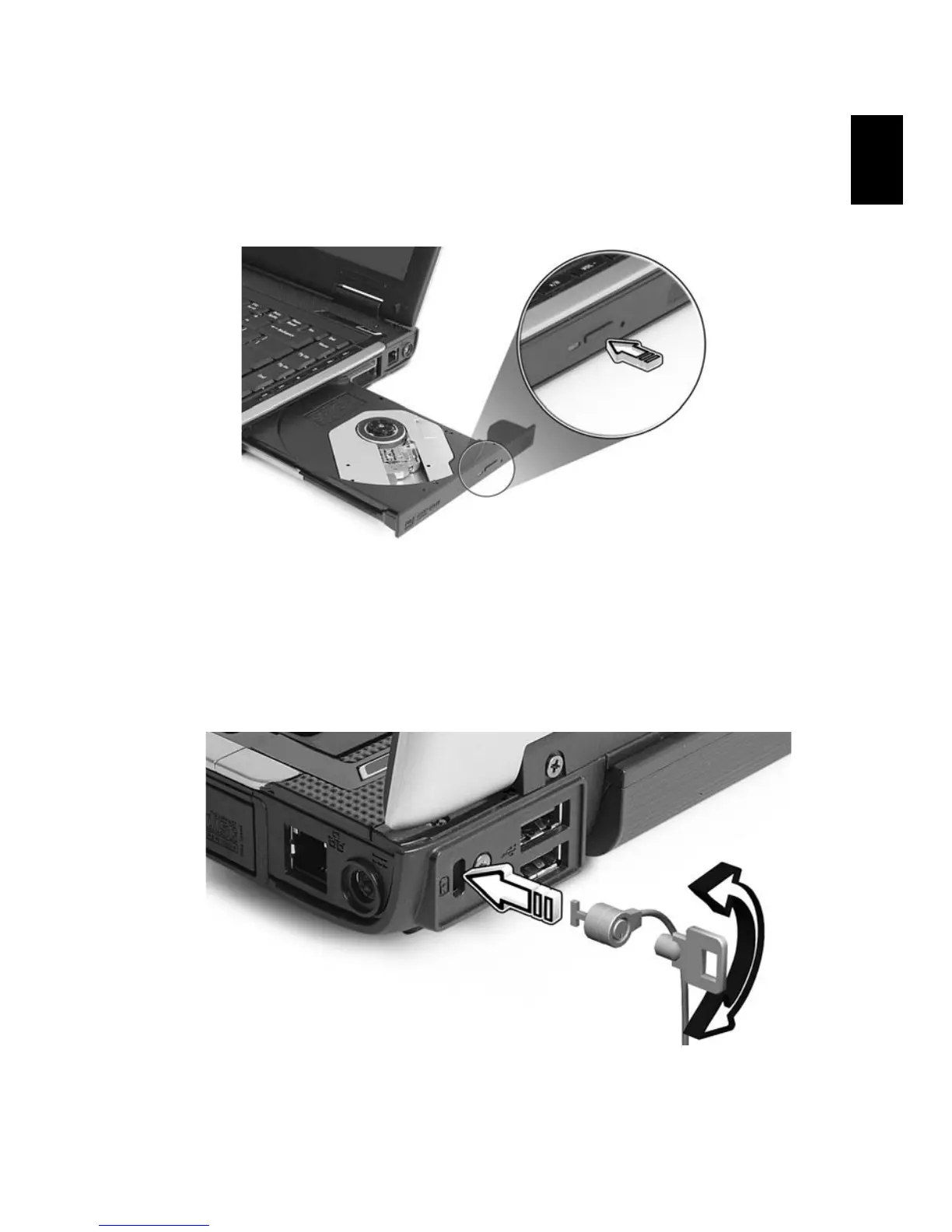 Insert a paper clip to the emergency eject hole to eject the optical drive tray