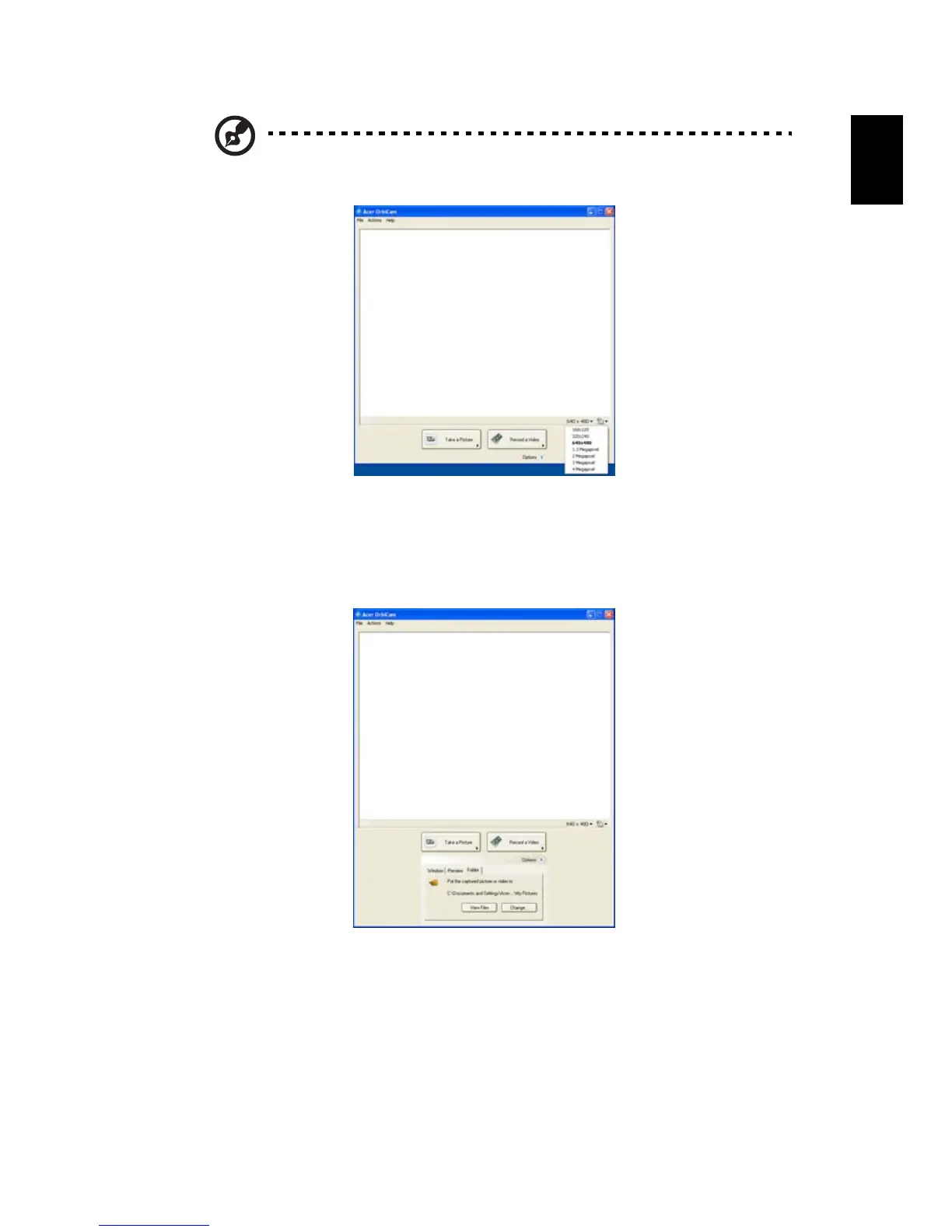 Note: Setting the camera resolution to 640 x 480 or larger does