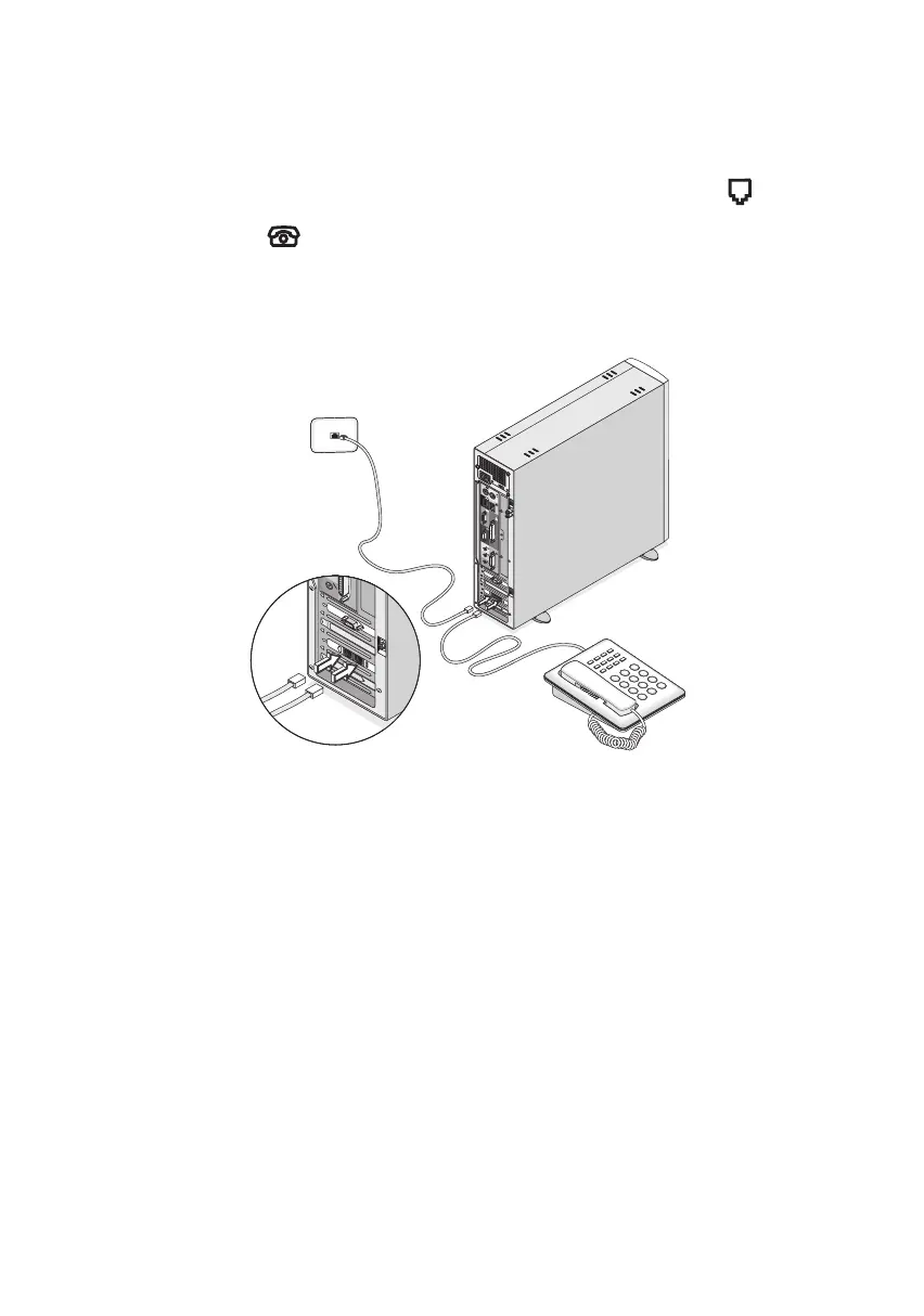Set up your modem connection by plugging the telephone line