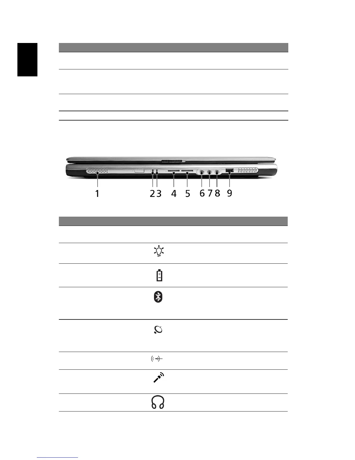 6 Line-in jack Accepts audio line-in devices (e.g.,
