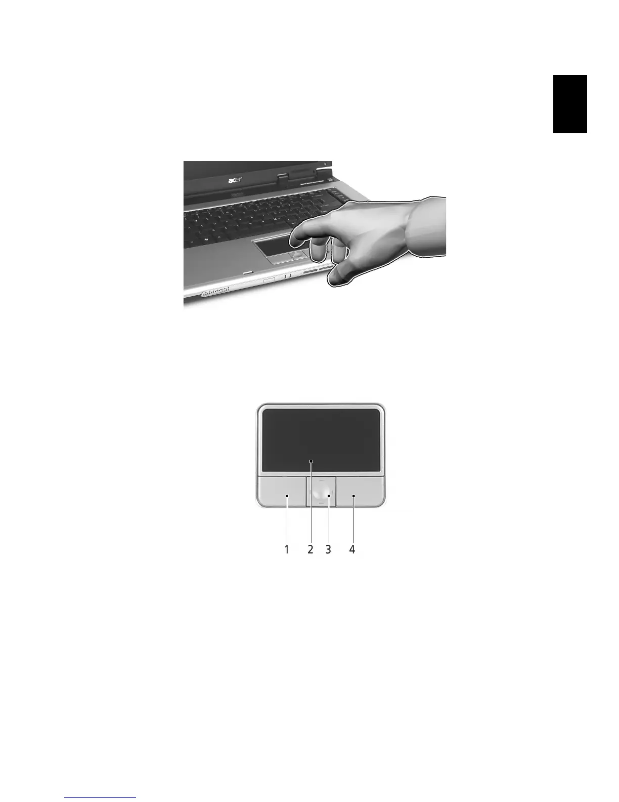 Press the left (1) and right (4) buttons located beneath the touchpad to